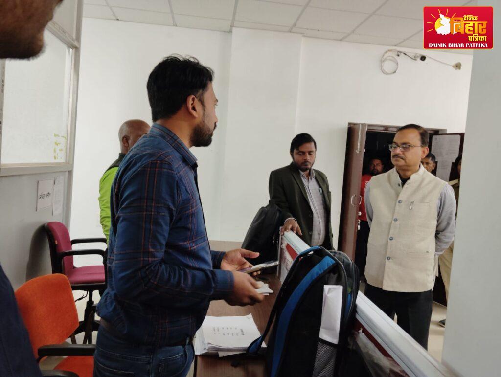 सुपौल (बिहार)। अपर समाहर्ता (एडीएम) राशिद कलीम अंसारी ने गुरुवार को सुपौल अंचल कार्यालय का औचक निरीक्षण किया। इस दौरान उन्होंने भूमि संबंधित फाइलों, उपस्थिति पंजी, कैश बुक और अन्य आवश्यक दस्तावेजों की जांच की। उन्होंने अधिकारियों को स्पष्ट निर्देश दिया कि एलपीसी, आय, जाति, निवास प्रमाणपत्र, म्यूटेशन और परिमार्जन संबंधी आवेदनों का शीघ्र निष्पादन किया जाए।