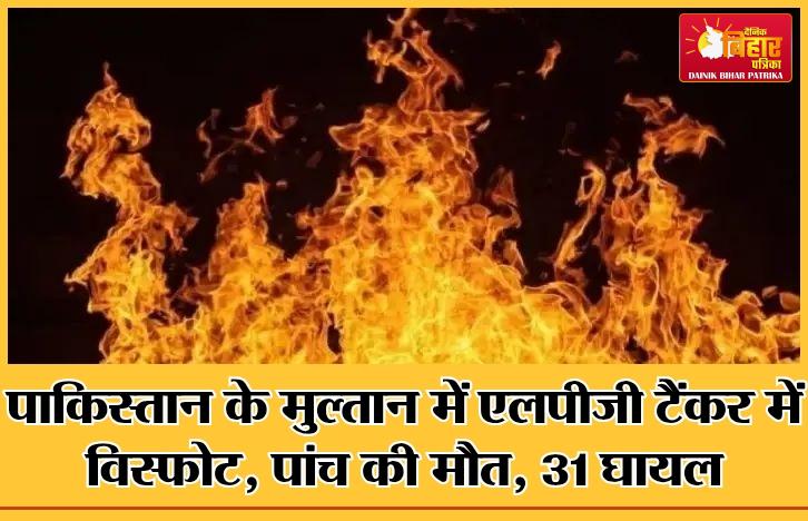 पाकिस्तान के पंजाब प्रांत के मुल्तान के हामिदपुर कनोरा इलाके के औद्योगिक एस्टेट में आज सुबह एलपीजी टैंकर में हुए विस्फोट में पांच लोगों की