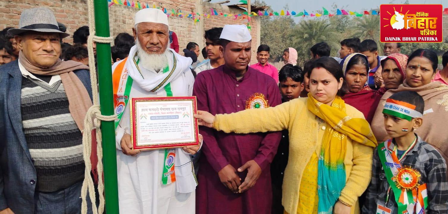76 वर्षीय वयोवृद्ध को सरपंच ने सौंपा सम्मान प्रमाण पत्र, समारोह में उमड़ी ग्रामीणों की भीड़ गोगरी (खगड़िया) — गोगरी प्रखंड अंतर्गत रामपुर ग्राम कचहरी